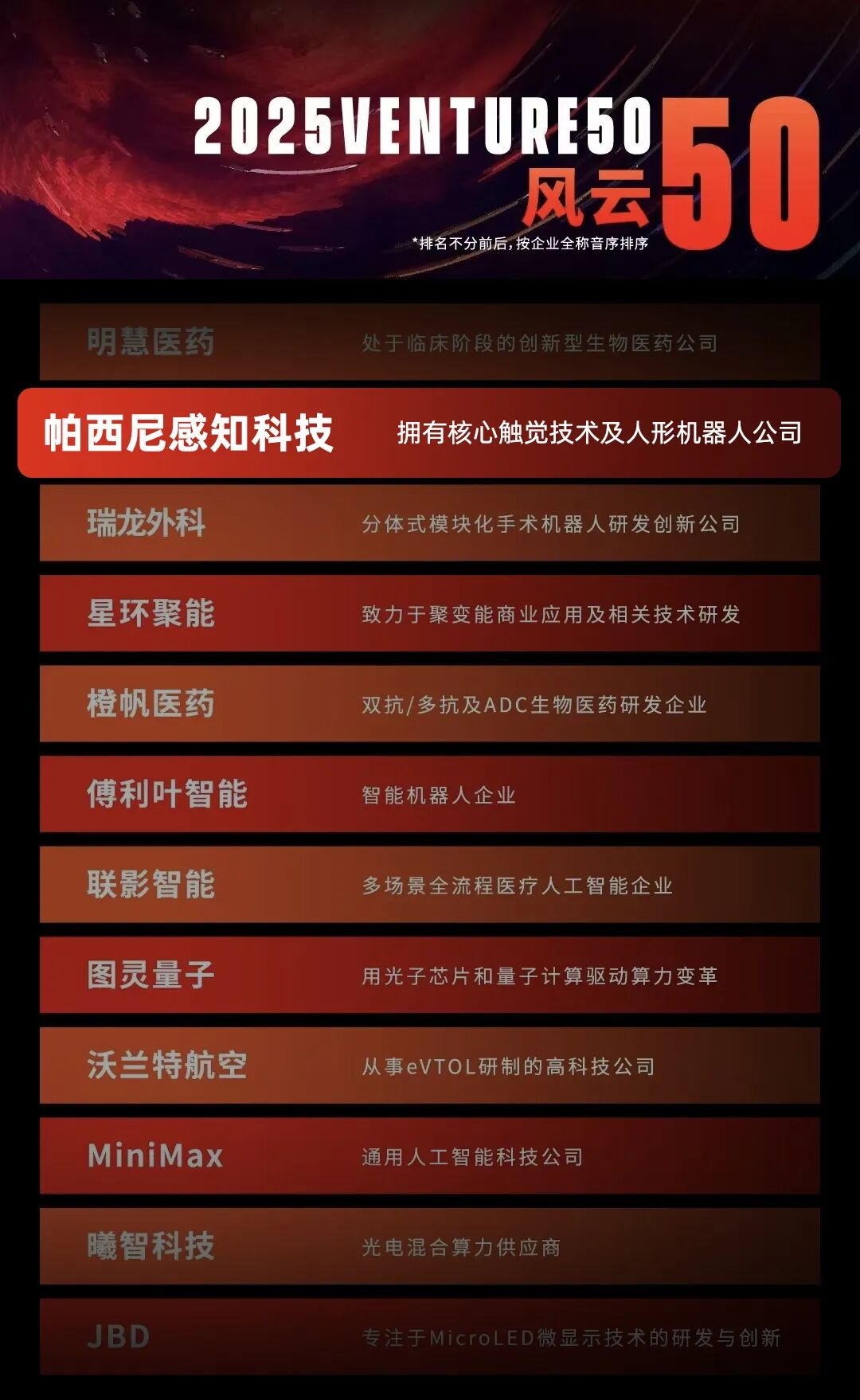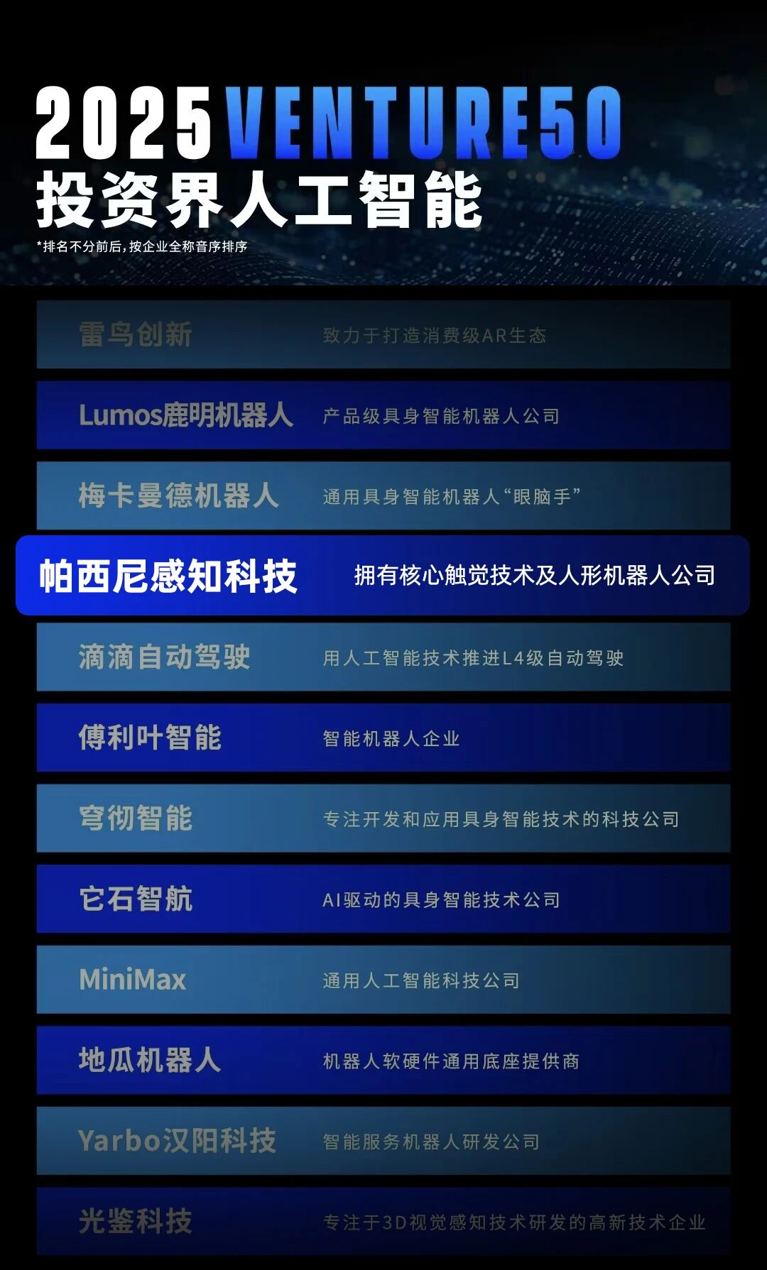This selection into the dual lists of "2025 VENTURE50" is not only a concentrated reflection of PaXini's past innovation achievements but also a new starting point for its high-quality development in the future. Going forward, PaXini will continue to collaborate with capital forces and industrial upstream and downstream partners, building a bridge for the intelligent world through advanced sensing and intelligent technologies. The company will persist in exploring more application scenarios for embodied intelligence, enabling AI to truly understand the physical world and empower thousands of industries.